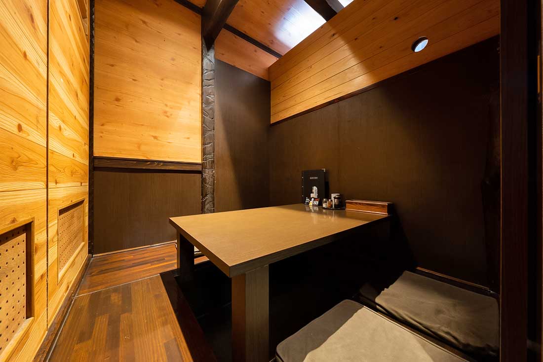 4名様定員・6名様定員の個室が合計10部屋あり、少人数のグループ様からご利用可能。日常の会食から女子会・合コンまで様々なシーンでご利用ください。また、個室は仕切りを外して連結可能。最大30名の団体様をお受入れ可能なため、忘新年会など大人数でのご宴会にも活用ください。