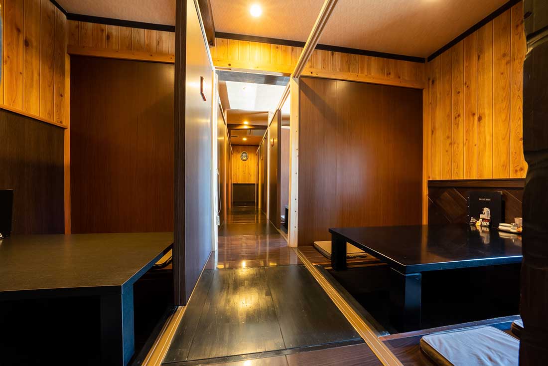 53席(カウンタ―5席、4名個室掘りごたつ、6名個室掘りごたつ) カウンタ―以外は全て個室となります。個室は連結が可能で最大30名様を収容可能です。団体様のご宴会で活用ください |