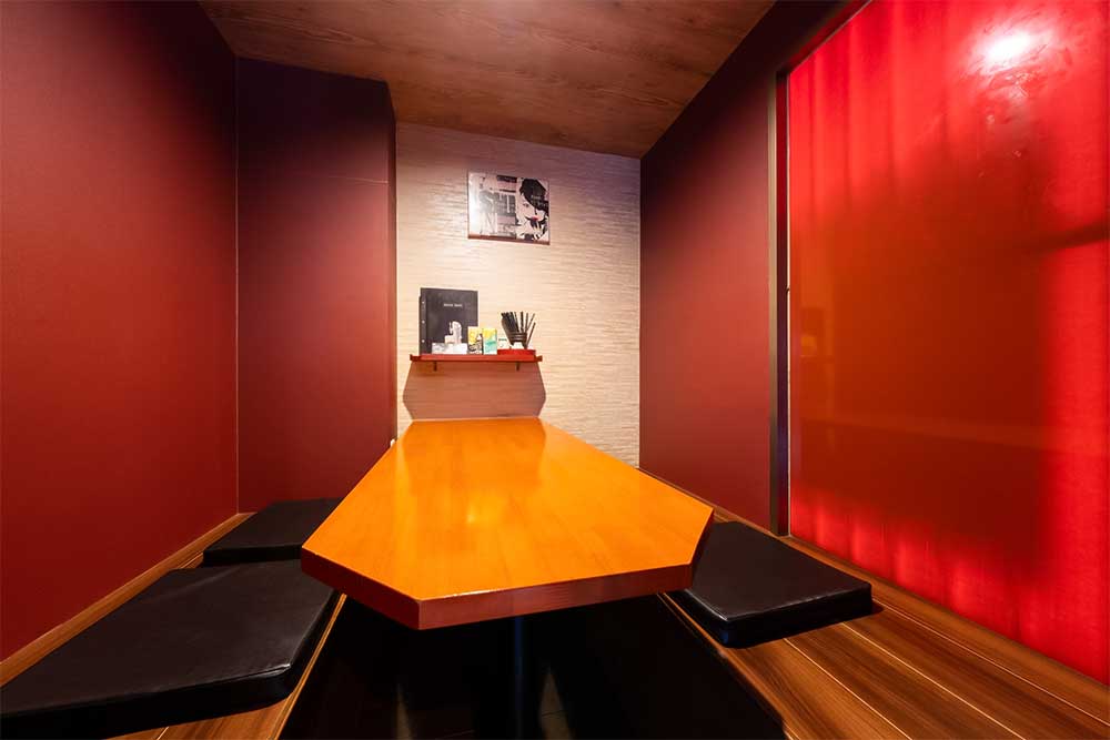 個室は4部屋を完備。各部屋6名様の定員で、プライベートな会食やご宴会でのご利用に最適!タッチパネルによるオーダーシステムを導入しており、御注文も楽々!さらに個室は3部屋を連結することで、最大20名の団体様もお受入れが可能です。